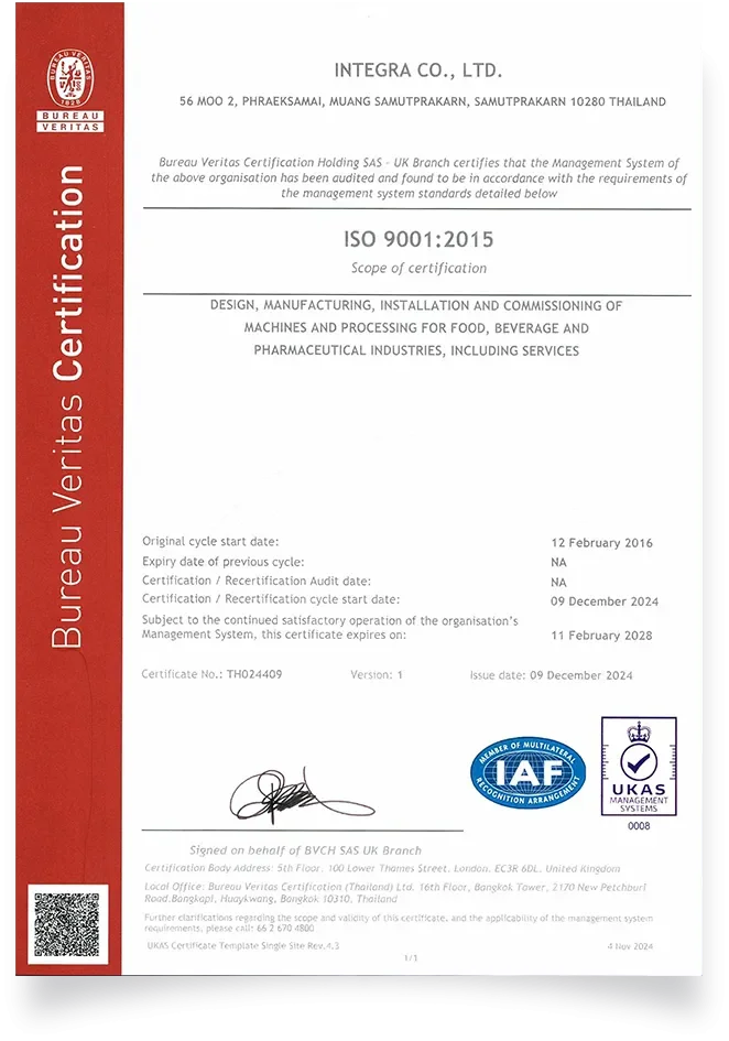 Integra Co., Ltd. was founded by the group of engineers who had experience in process engineering. We are to assist manufacturers to achieve high productivity and product reliability with modernized technology production line. The good engineering behind the plant will guarantee the production running at the most efficiency.